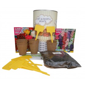 Kit de huerto infantil. Para que los más pequeños se diviertan. Incluye: Lata gigante con abre fácil. Semillas clavel gigante. Semillas flores...