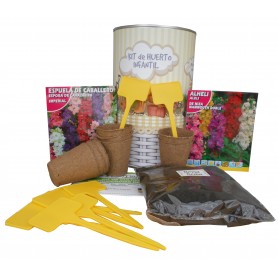 Kit de huerto infantil. Para que los más pequeños se diviertan. Incluye: Lata gigante con abre fácil. Semilla Espuela de Cabellero. Semillas...