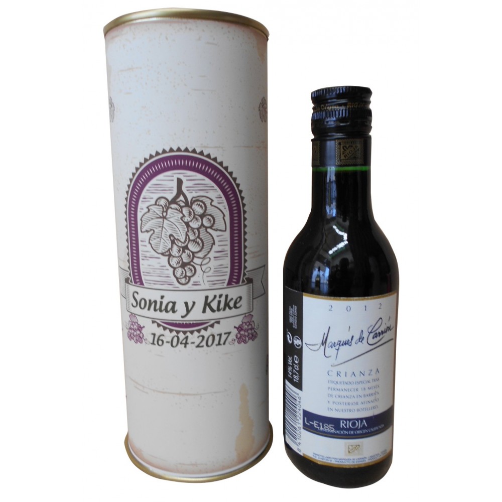 Botellín de Vino Tinto Crianza Marques Carrion en lata personalizada con abre fácil.